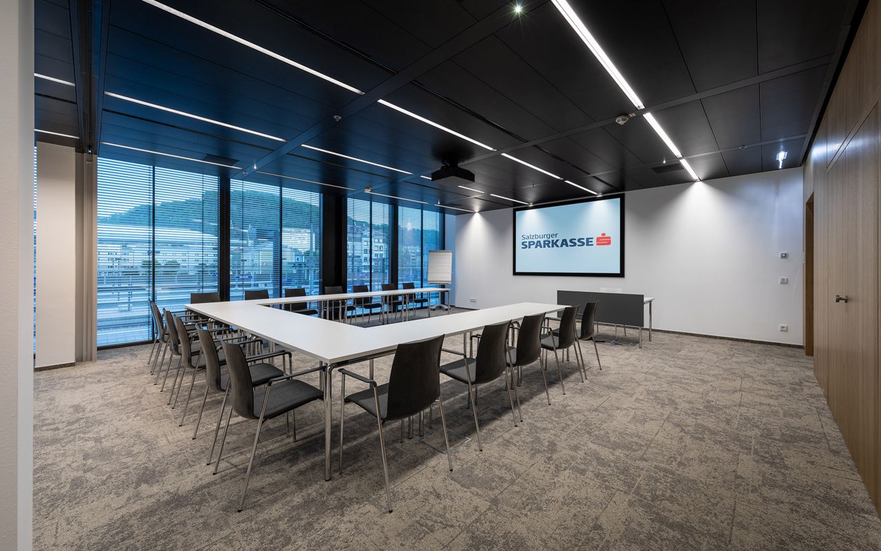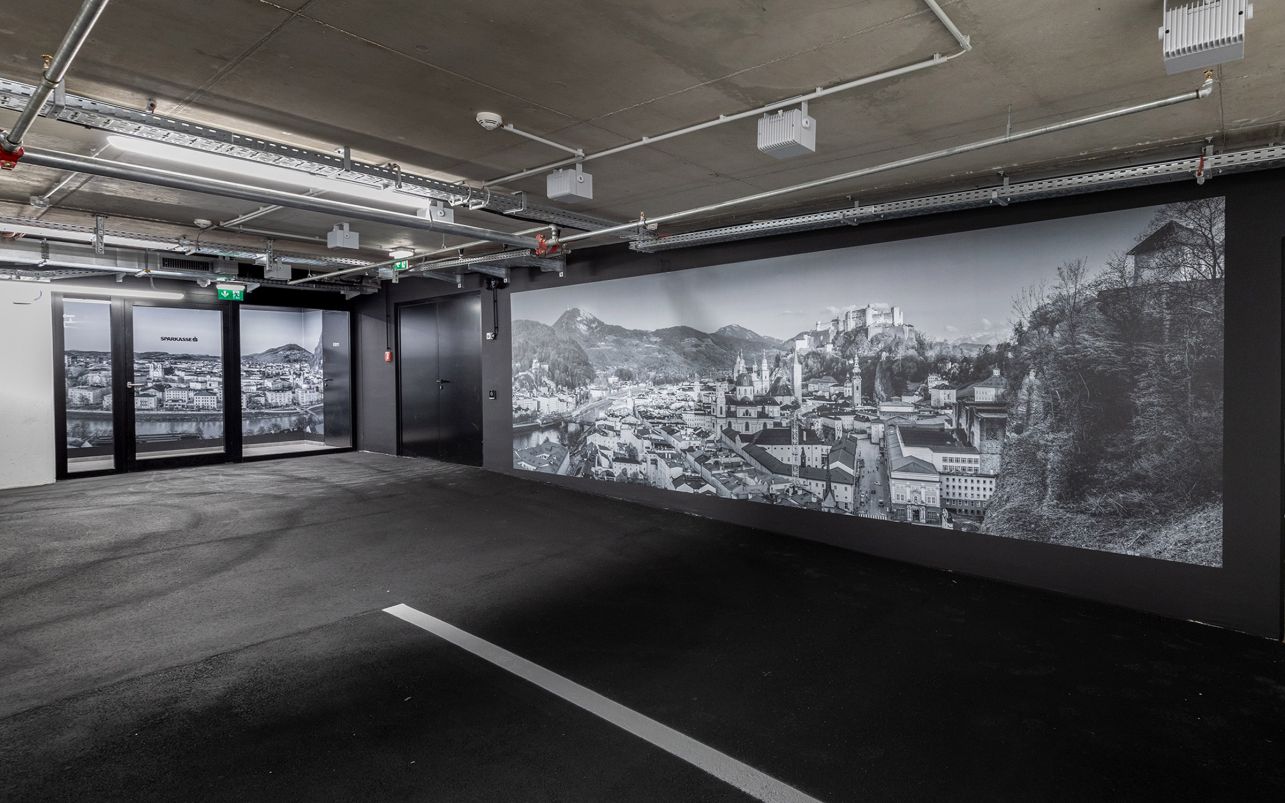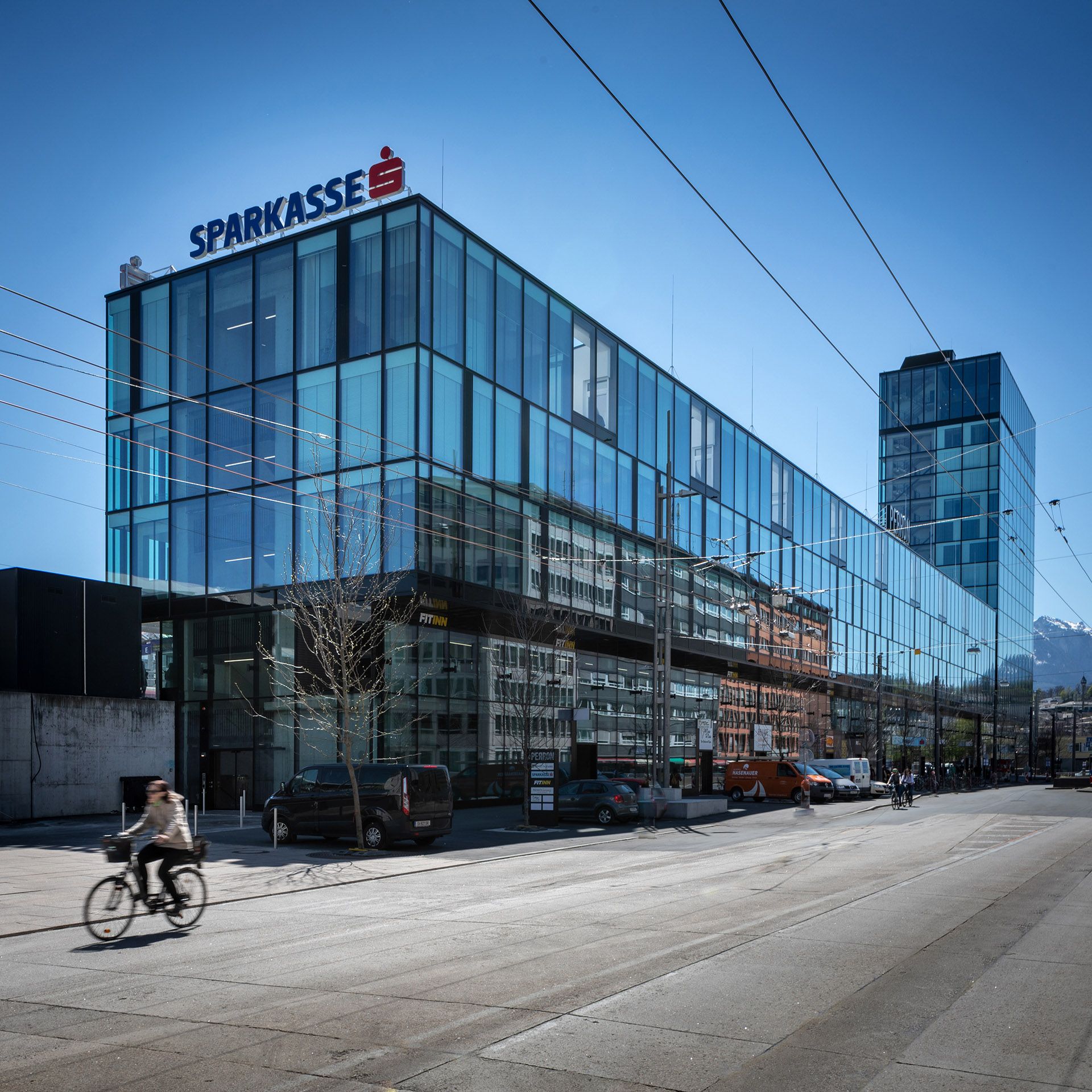 Der neue Firmensitz der Salzburger Sparkasse befindet sich an einem außergewöhnlichen Standort. Direkt an die Bahngleise des Salzburger Hauptbahnhofs angrenzend bieten sich hier ungewöhnliche Ausblicke auf die pulsierende Umgebung sowie neuartige Durchblicke innerhalb des Gebäudes.