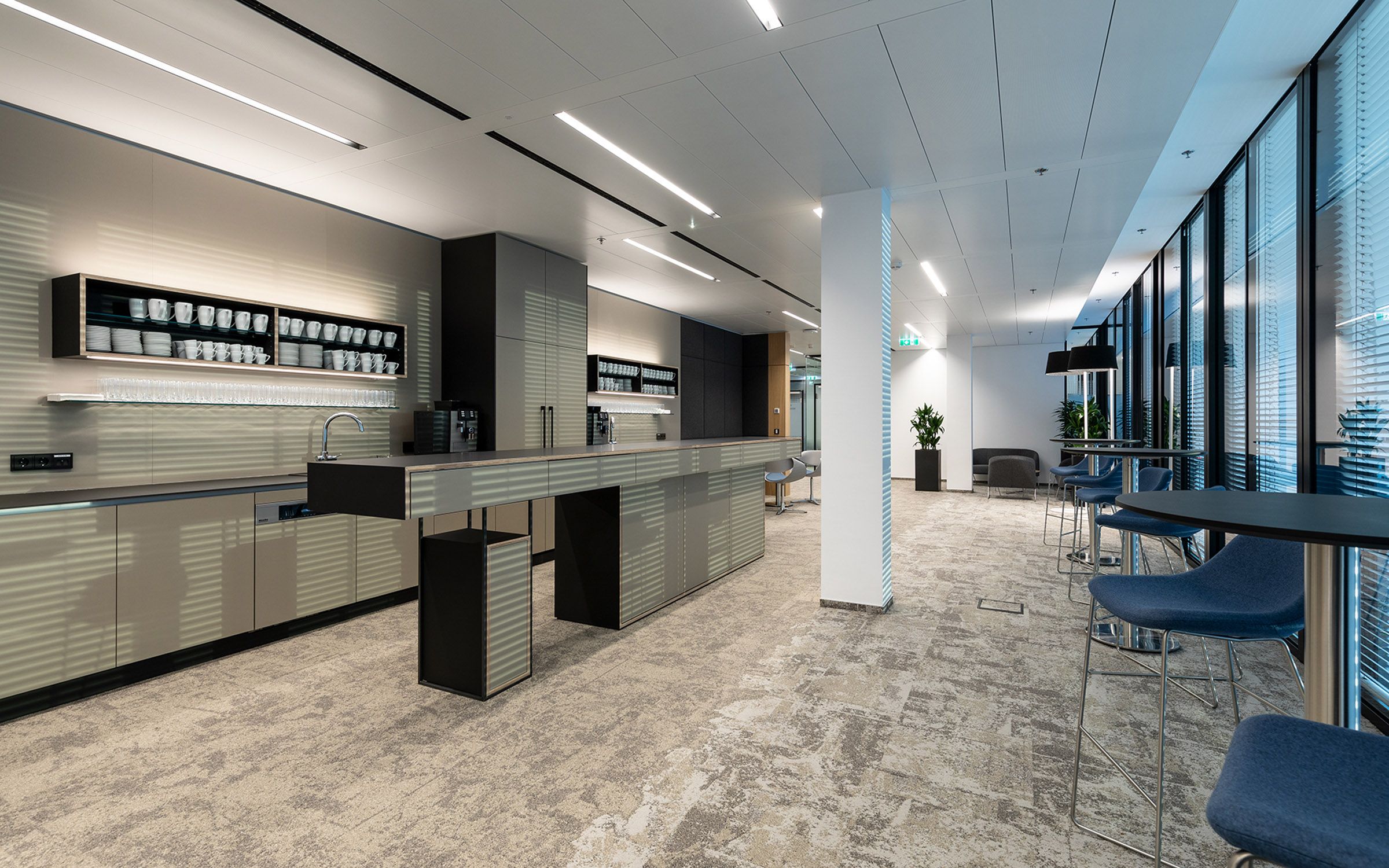 Die neuen Bürowelten sind als freie, offene Arbeitsbereiche konzipiert, in welchen gekonnt zwischen Offenheit und Privatheit in unterschiedlichen Abstufungen jongliert wird. Von Organisationsteams gemeinschaftlich genutzte offene Bürozonen sorgen für mehr Kommunikation und bieten viel Raum für Kreativität und neuartige Interaktionsmöglichkeiten untereinander.