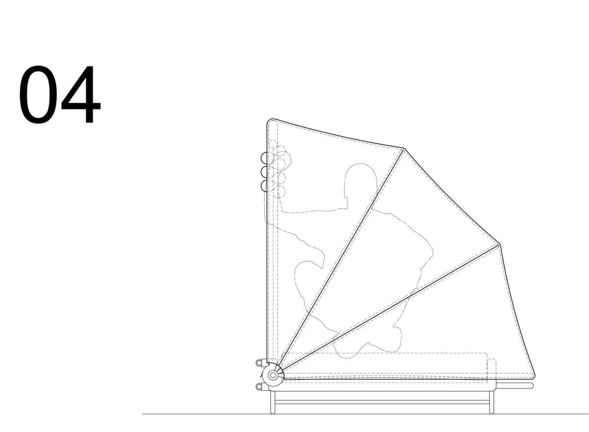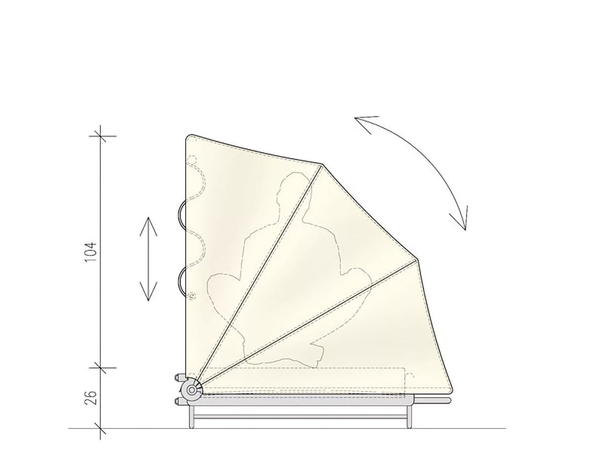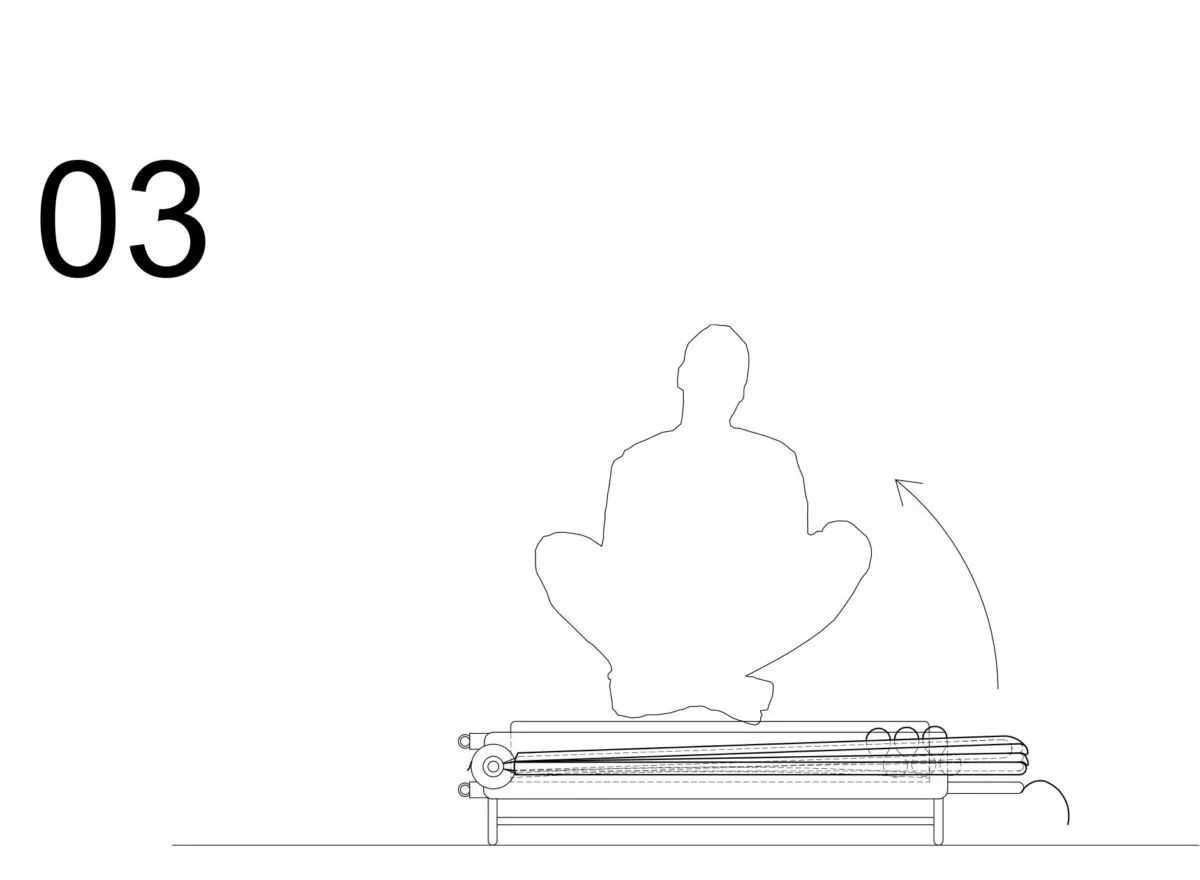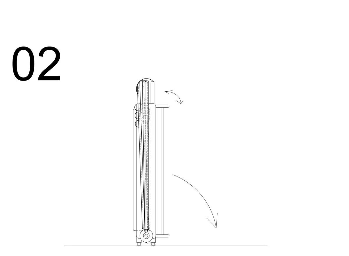 Die Beine werden ausgeklappt und das gesamte Element um 90° gekippt.