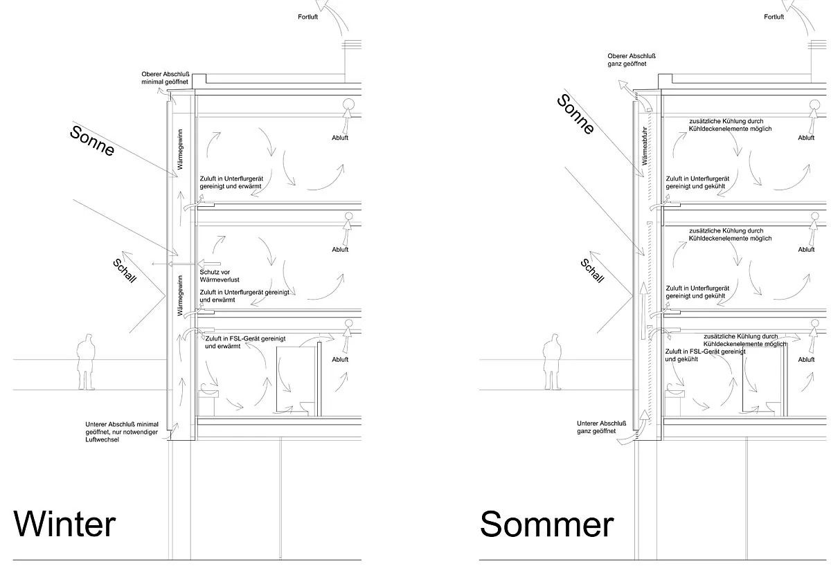 Unterschiedliche Stellungen des Rollos eröffnen unterschiedliche Ausblicks- und Kommunikationsmöglichkeiten.