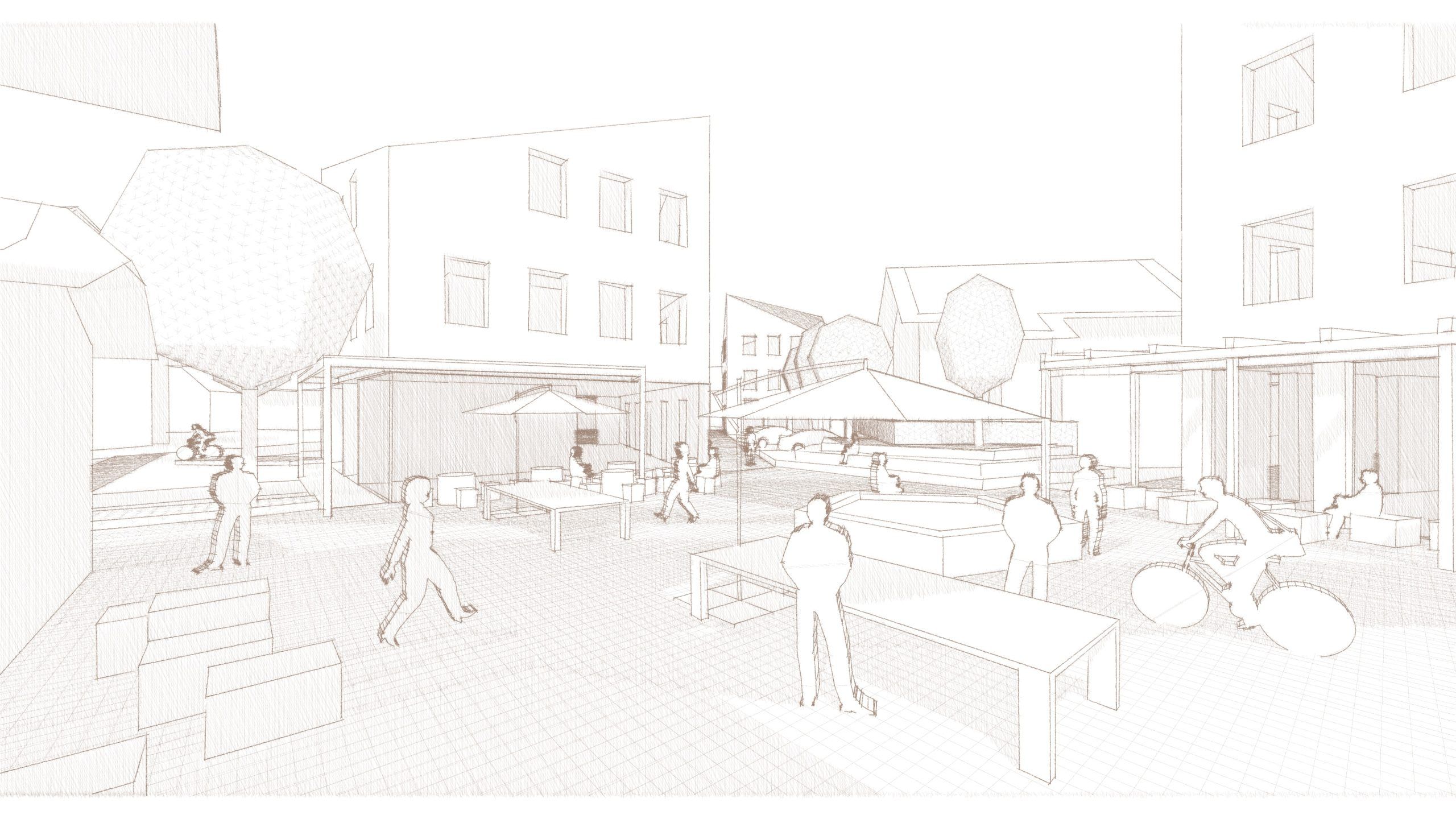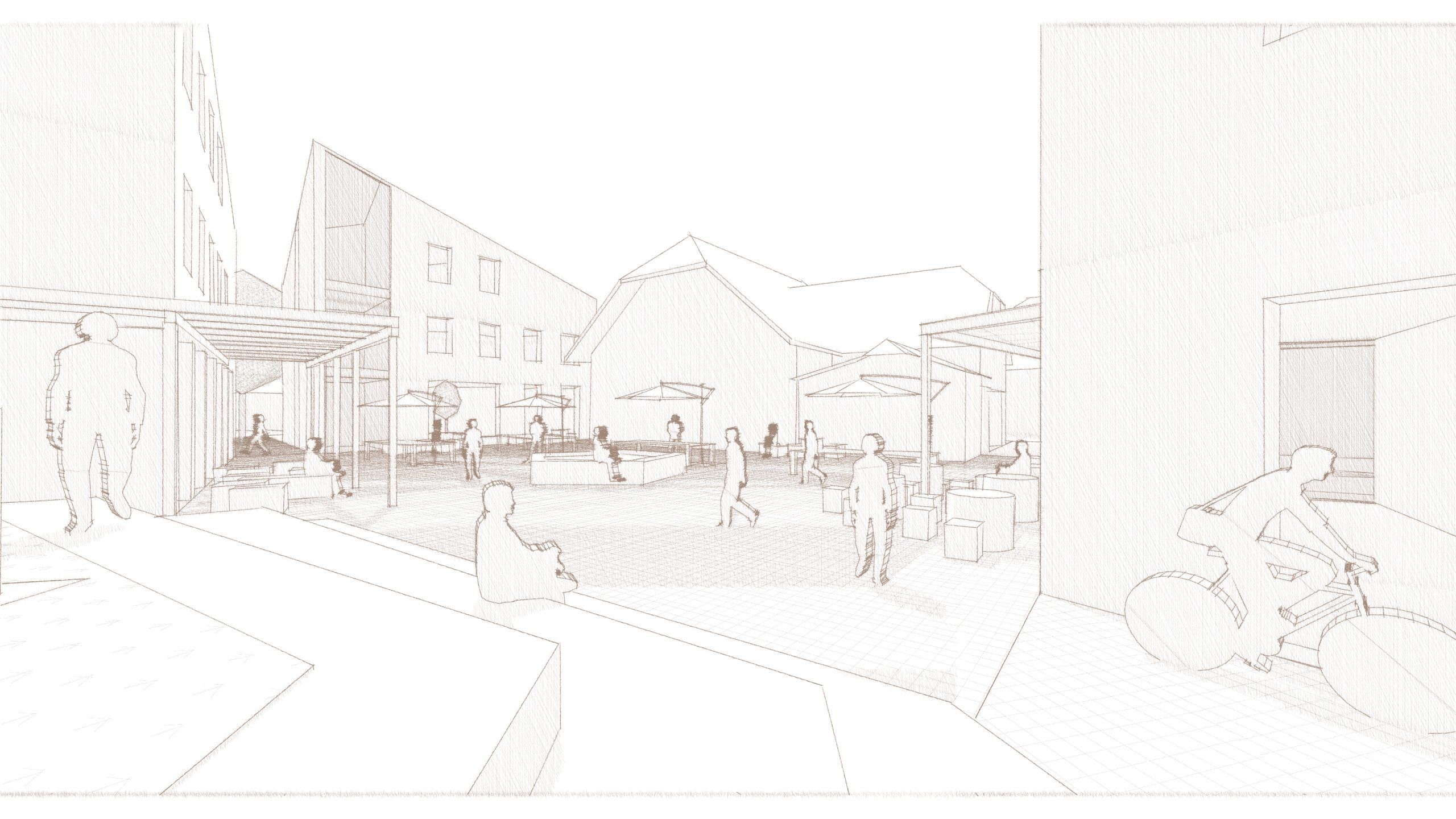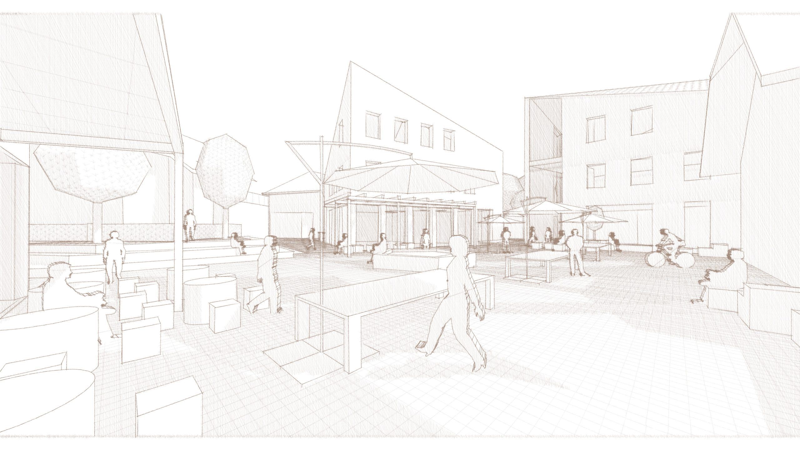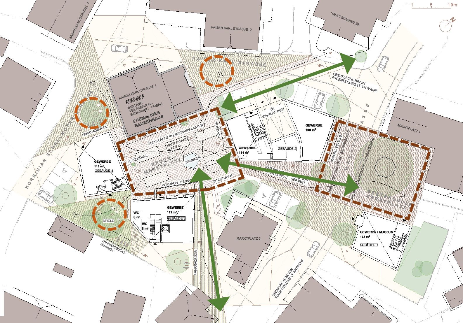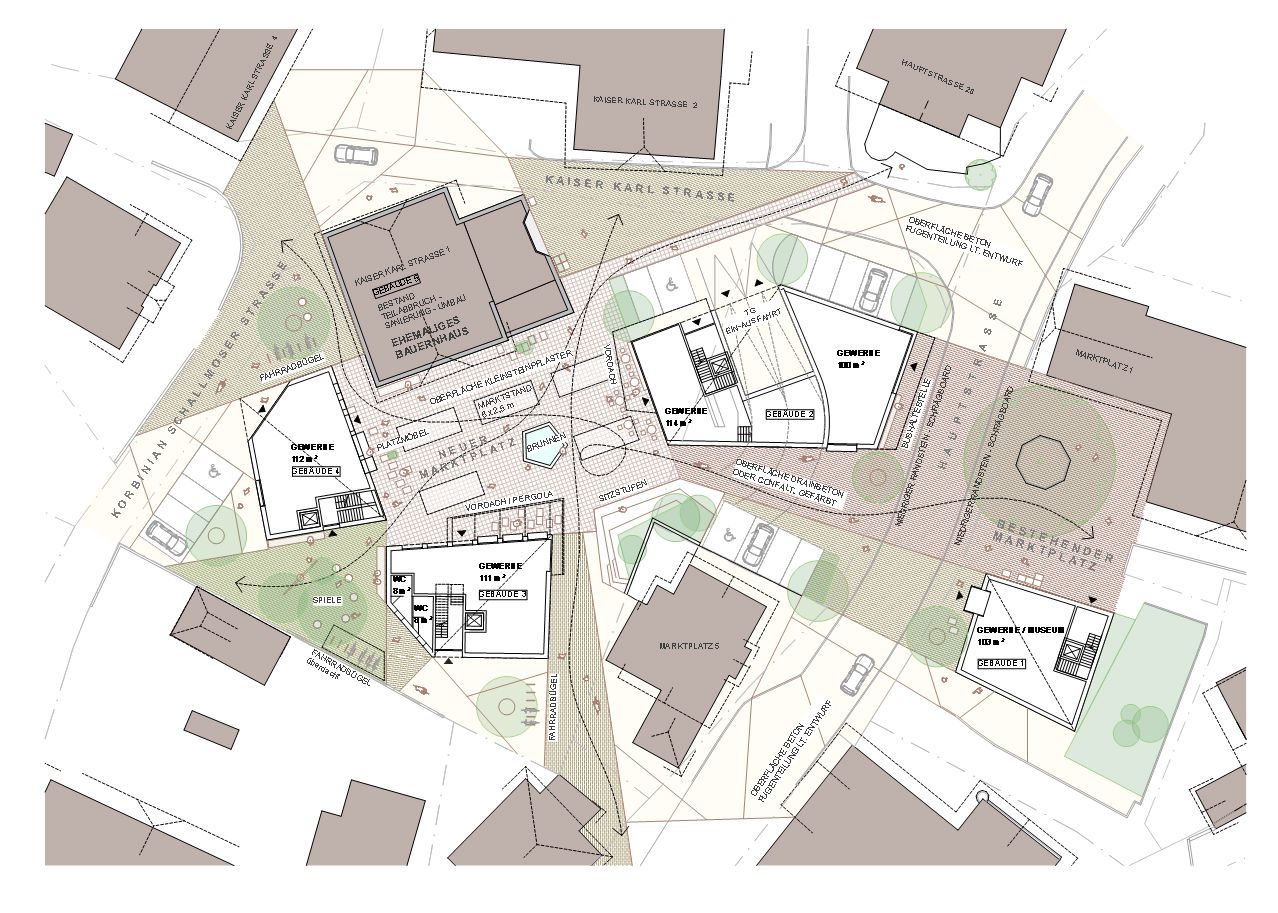 Rund um den neuen Marktplatz entstehen kleine, vorgelagerte Platzzonen, die auch das Hinterdorf als Vorderseite in das Konzept einschließen und eine Wiederbelebung der umliegenden Gewerbeflächen bewirken können.