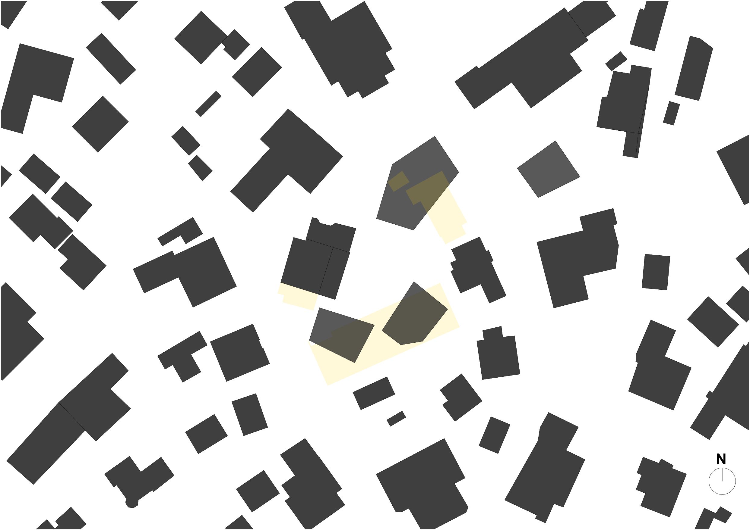 Das traditionelle und erhaltenswerte Bauernhaus „Rosenlehen“ bildet mit seiner prägnant gedrehten Ausrichtung das Rückgrat für den neuen Marktplatz.
