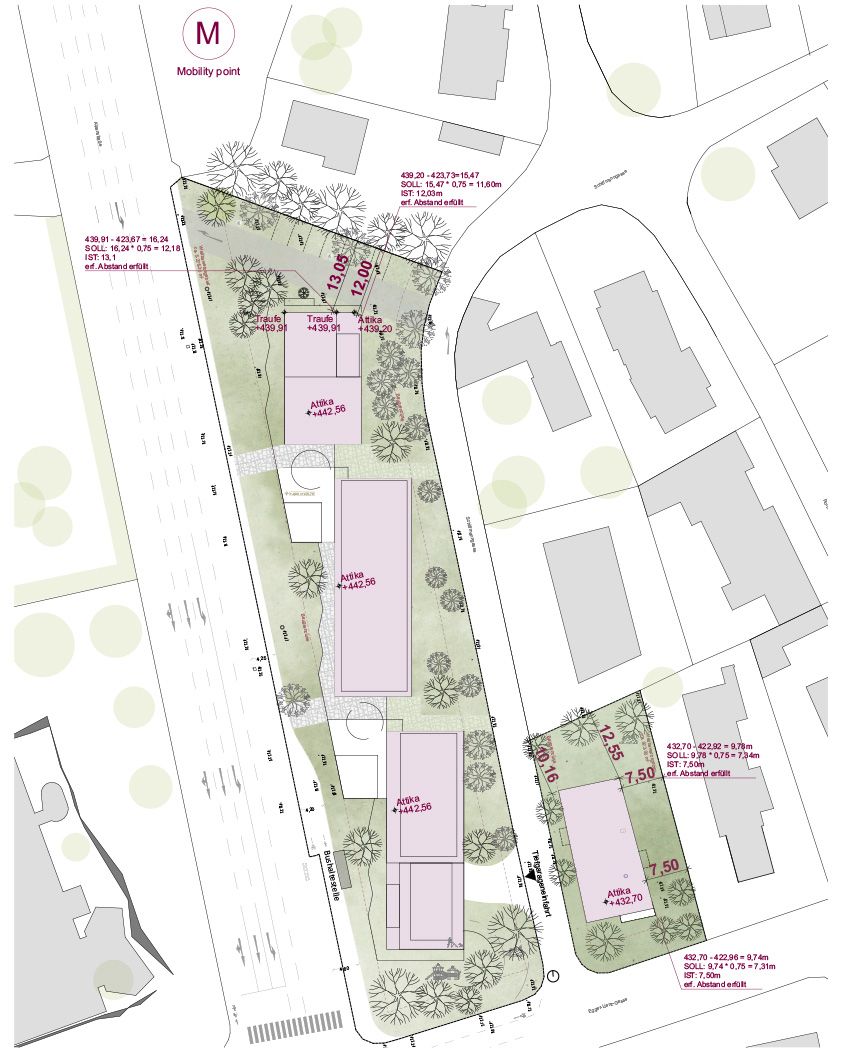 Entlang der Alpenstraße ist dadurch die Pflanzung einer stadtraumprägenden, erdgebundenen Baumreihe möglich.
