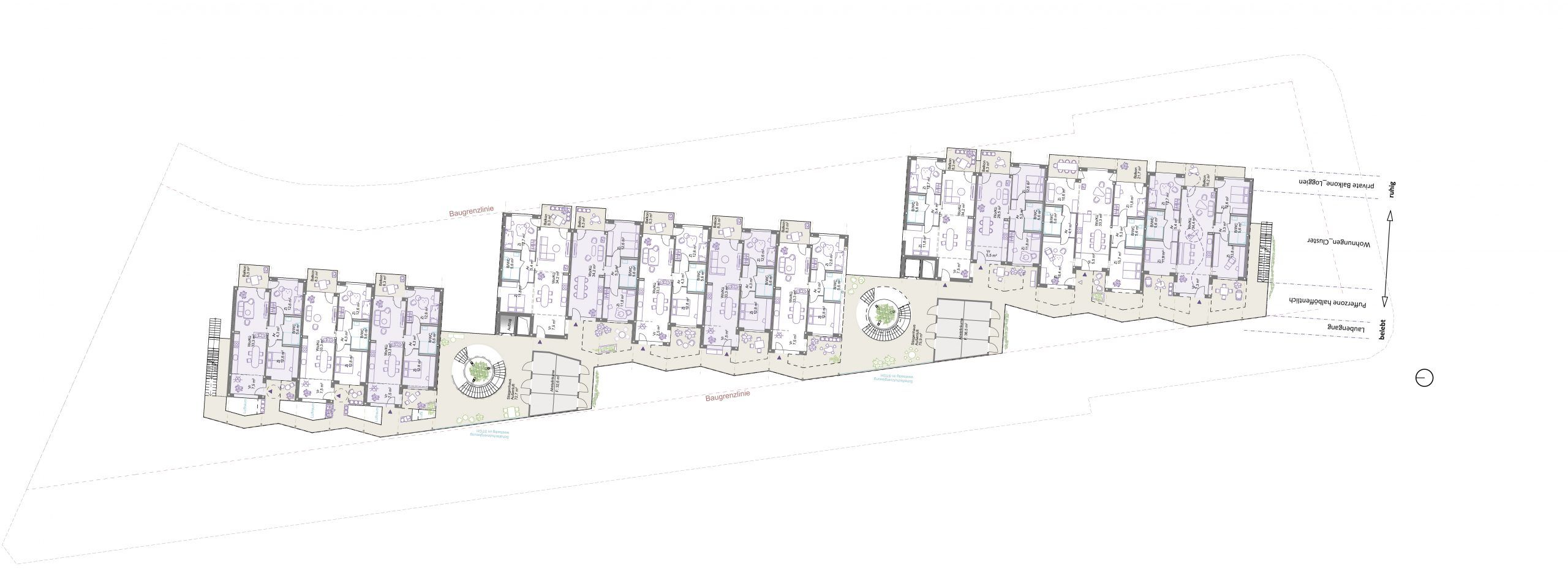 – abgesetzte Laubengangerschließung mit halböffentlicher Zwischenzone ermöglicht Interaktion